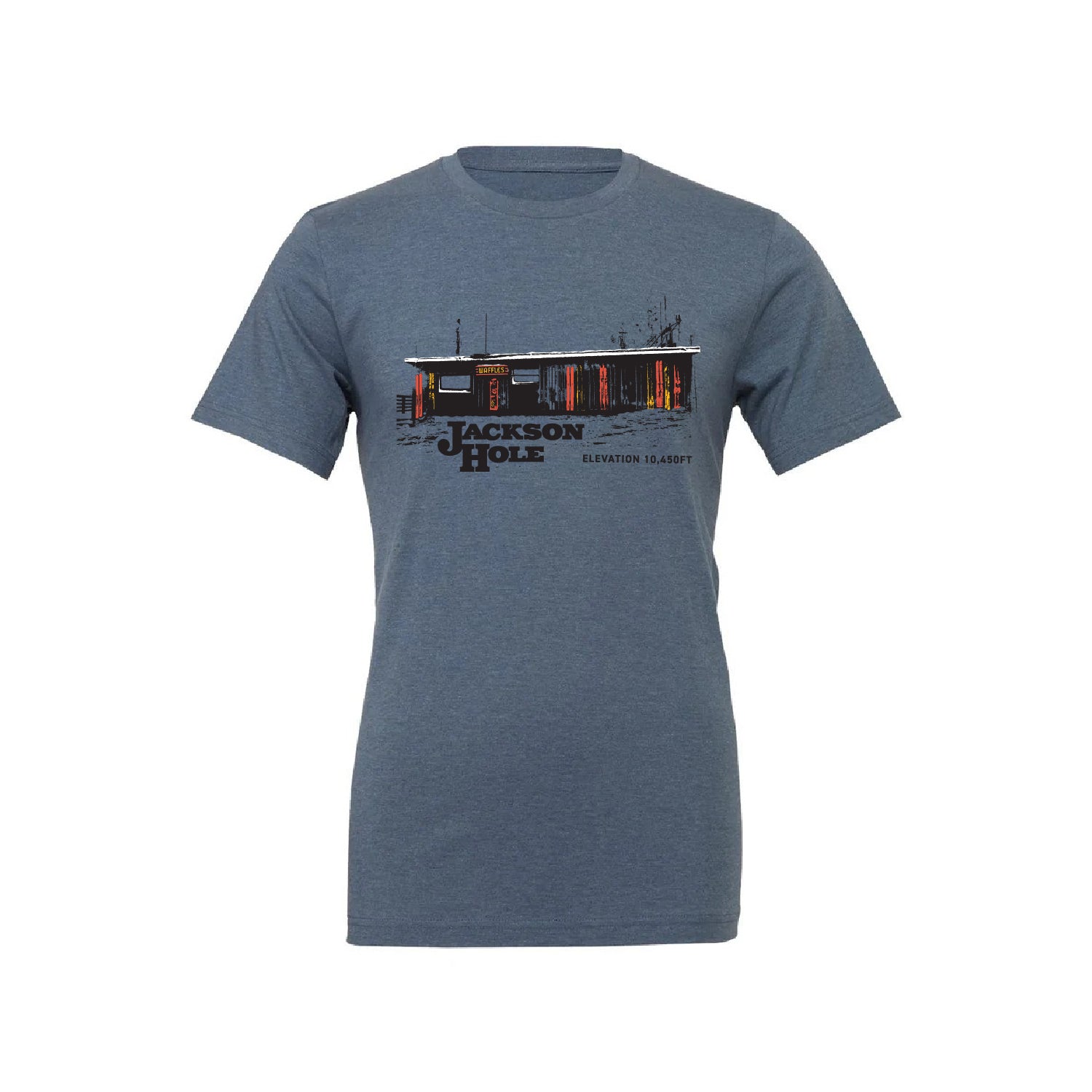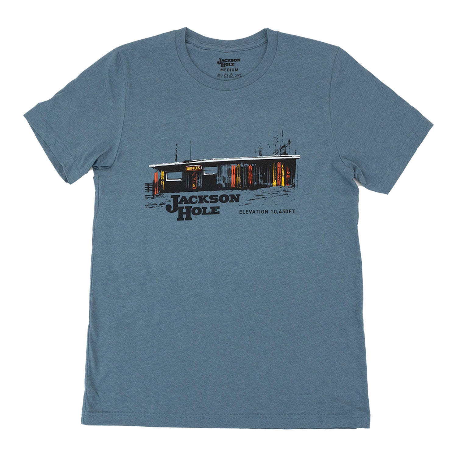 Those that have been to Jackson Hole Mountain Resort all know of our small but might Corbet’s Cabin. Built at the same time as our original Tram it now provides shelter and to countless skiers and snowboarders before they brave Rendezvous Bowl. When the weather outside is frightful, Corbet’s Cabin is a delightful haven to recharge your batteries and have a snack or two. Oh and did we mention the there’s waffle in there, what’s not to love about our cabin! Remember your time in Corbet's Cabin with this delightful short sleeve tee.