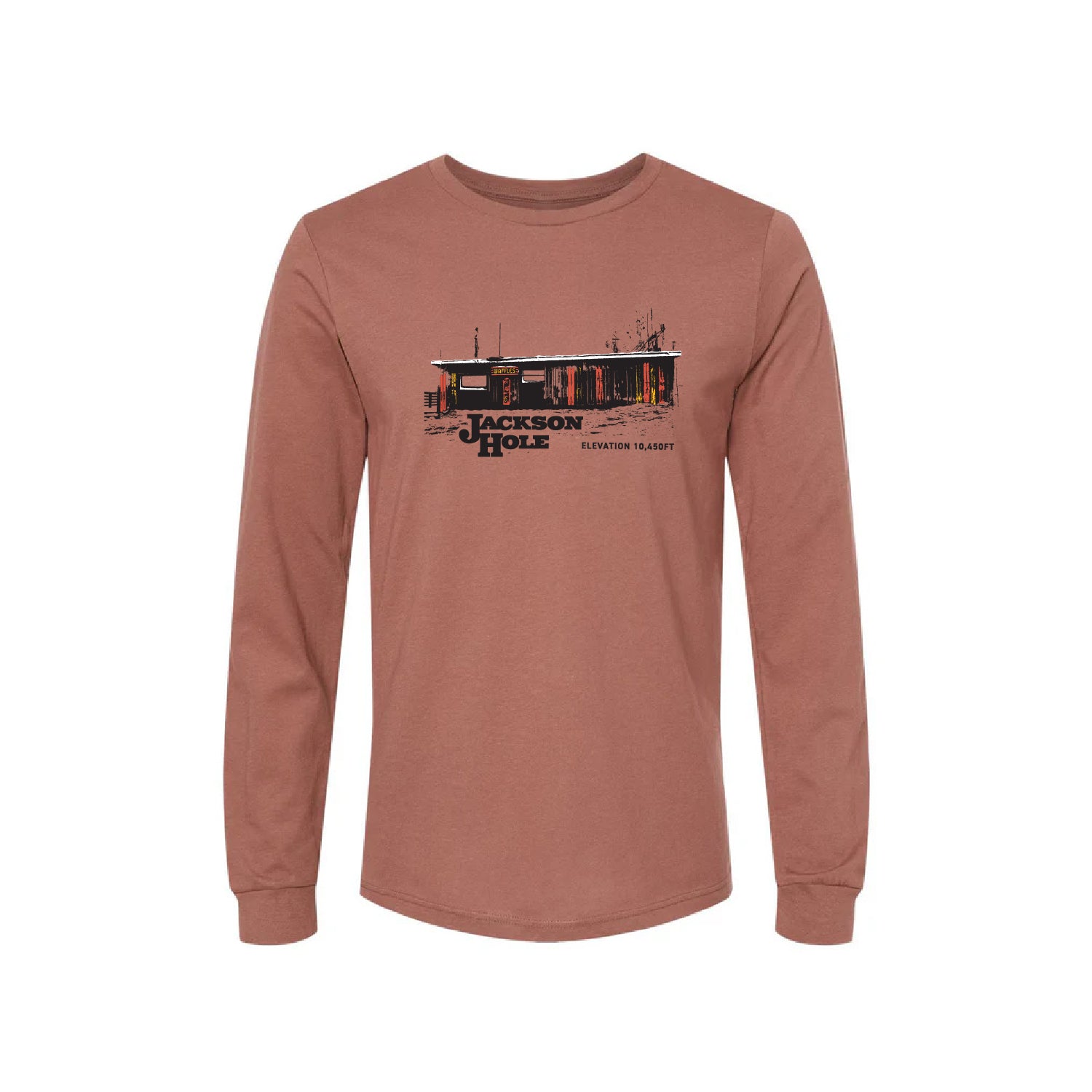 Those that have been to Jackson Hole Mountain Resort all know of our small but might Corbet’s Cabin. Built at the same time as our original Tram it now provides shelter and to countless skiers and snowboarders before they brave Rendezvous Bowl. When the weather outside is frightful, Corbet’s Cabin is a delightful haven to recharge your batteries and have a snack or two. Oh and did we mention the there’s waffle in there, what’s not to love about our cabin! Remember your time in Corbet's Cabin with this lovely long sleeve t-shirt.