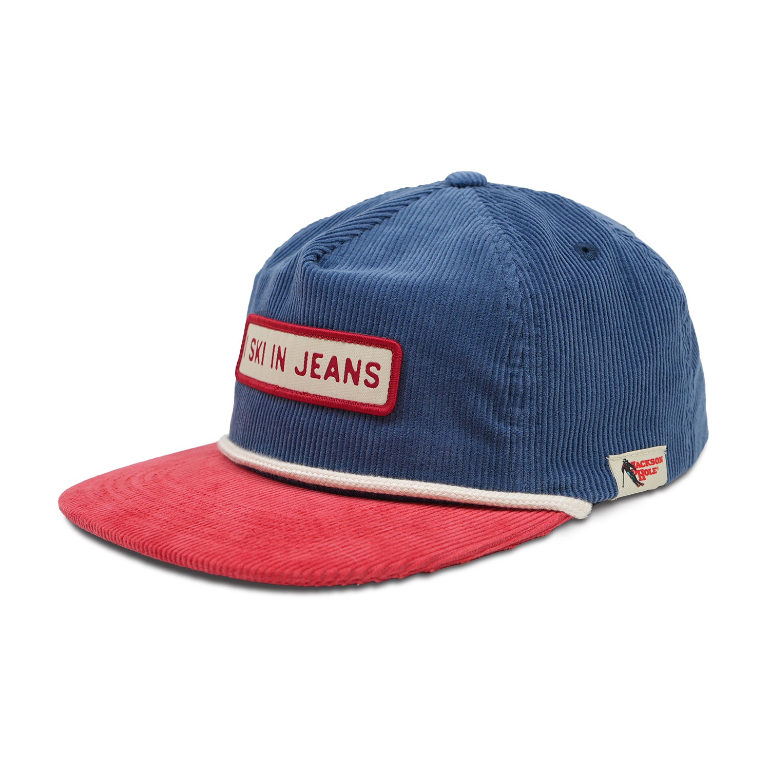 Skiing in jeans isn't just a lifestyle its a full blown event at Jackson Hole Mountain Resort so get your denim on and rep the fun with this “I Ski in Jeans” 5-Panel Corduroy Cap! Made from soft 11-wale corduroy with a flat bill and unstructured fit, it’s the ultimate nod to Ski in Jeans Day style. Casual, quirky, and full of mountain attitude—perfect for celebrating the 3rd annual event in true retro fashion.